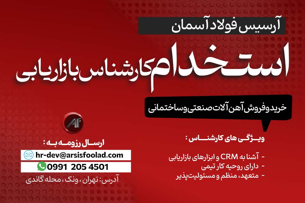 استخدام کارشناس بازاریابی آرسیس فولاد آسمان ، فعال در حوزه فولاد صنعتی و ساختمانی جهت…